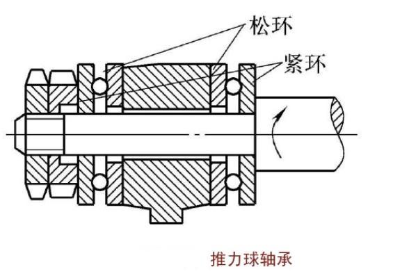 應(yīng)區(qū)分緊環(huán)與松環(huán),由于松環(huán)的內(nèi)孔比緊環(huán)的內(nèi)孔大,裝配時(shí)一定要使緊環(huán)靠在轉(zhuǎn)動(dòng)零件的平面上,松環(huán)靠在靜止零件的平面上,如下圖所示。